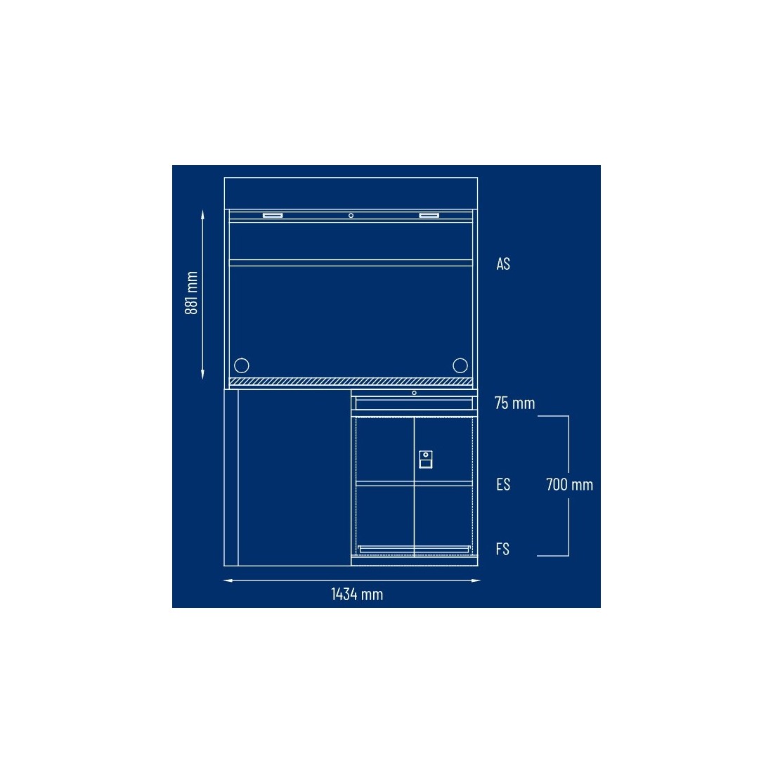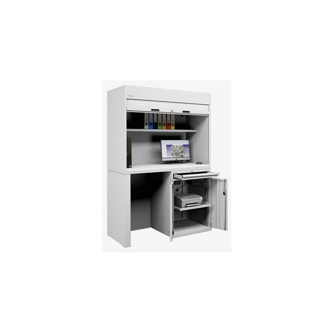Consente quindi la sistemazione sicura di documenti, verbali e hardware, con serranda di protezione e chiusura dotata di chiave Misure 1434 x 725 x 2200 h (ripiano 1040h)
