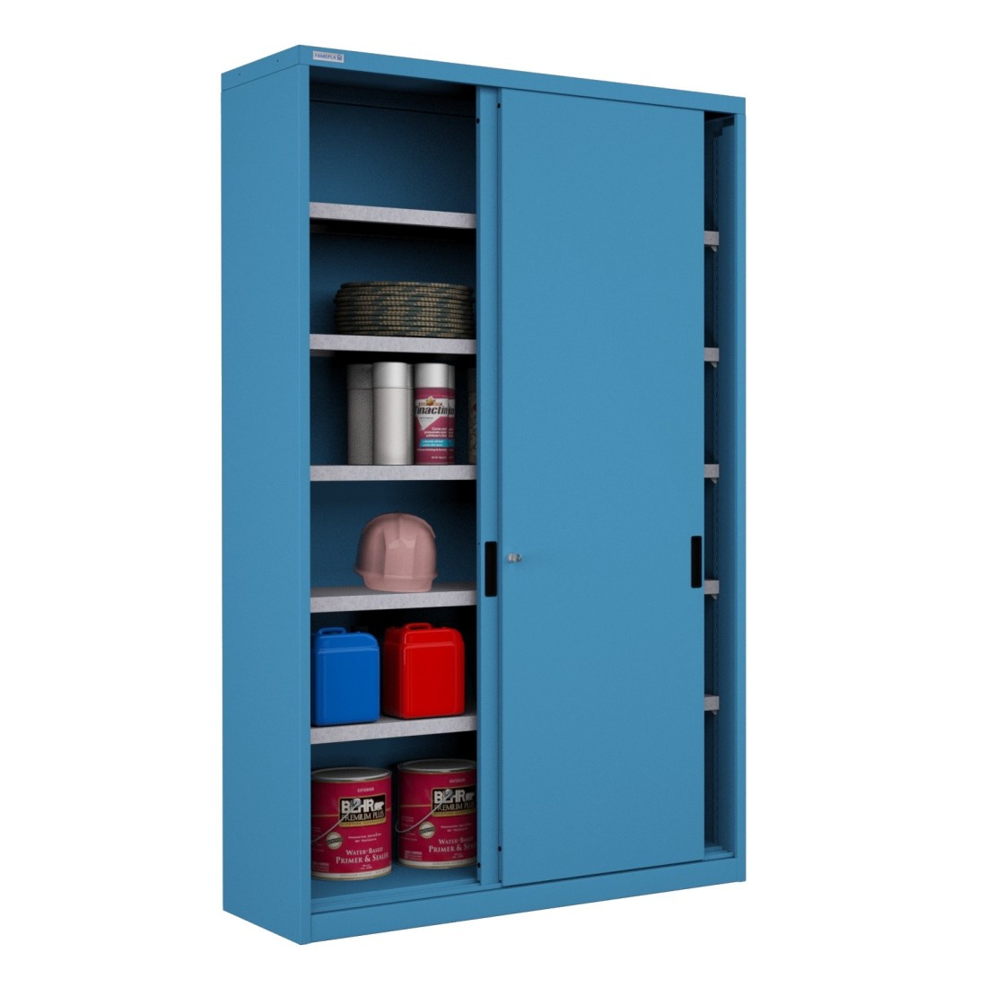 Armadio metallico in acciaio di prima qualità verniciato a polveri struttura monoblocco saldata e verniciata con prodotti ad alta resistenza.