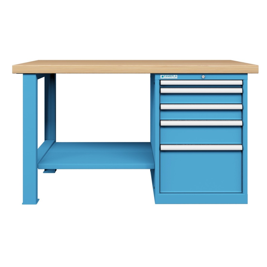 BANCO da LAVORO CON 5 CASSETTI CON RIPIANO PROFESSIONALE 1500 x 750 mm portata 1400 KG.