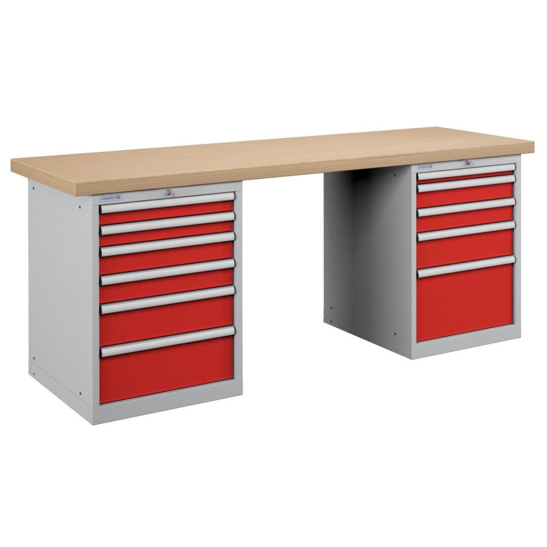 BANCO da LAVORO CON 11 CASSETTI PROFESSIONALE 2000 x 750 mm portata 1000 KG.