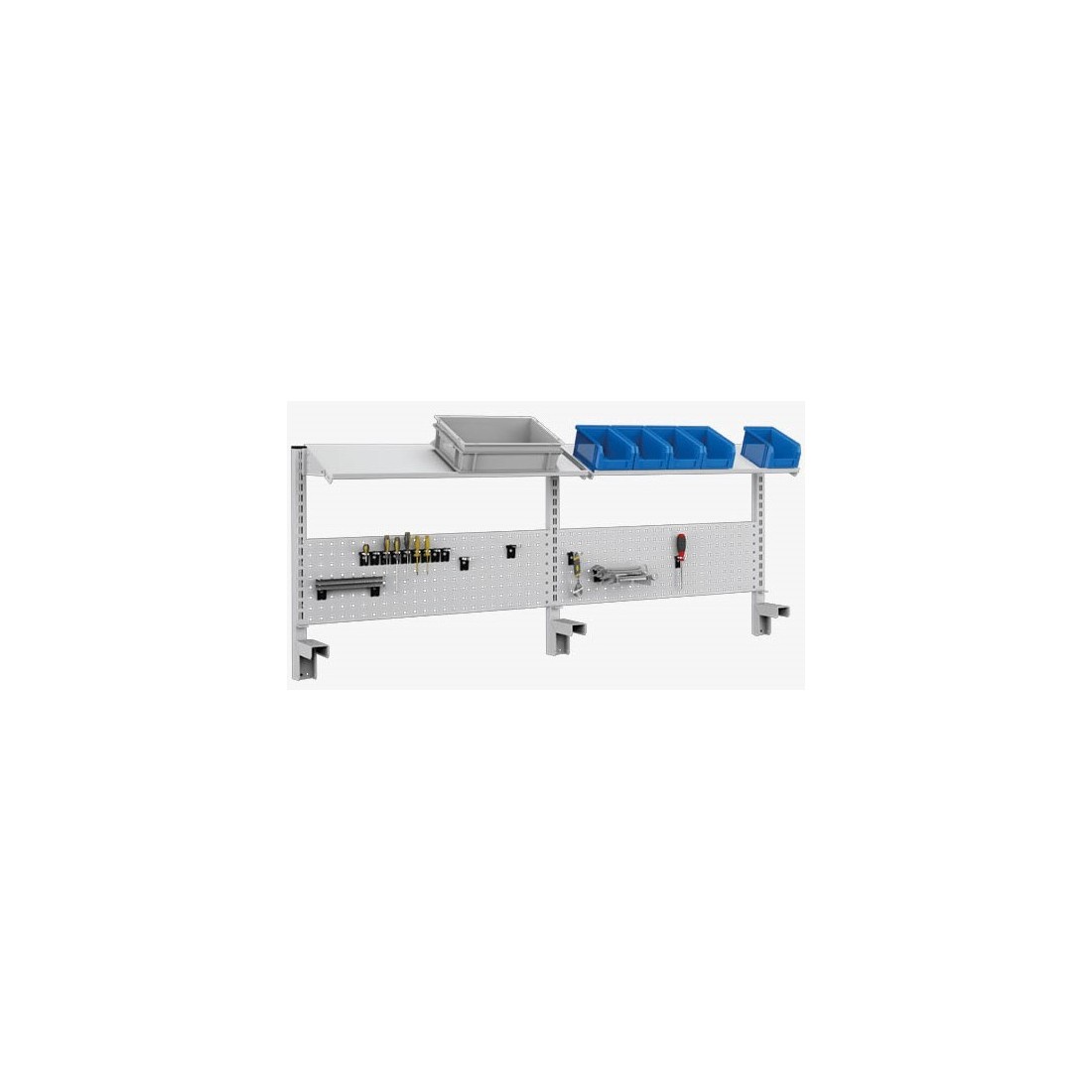 - Compatibilità con banchi da lavoro da 2000 mm: Ideale per banchi di grandi dimensioni, offre una soluzione organizzativa completa e sfrutta al meglio lo spazio verticale.