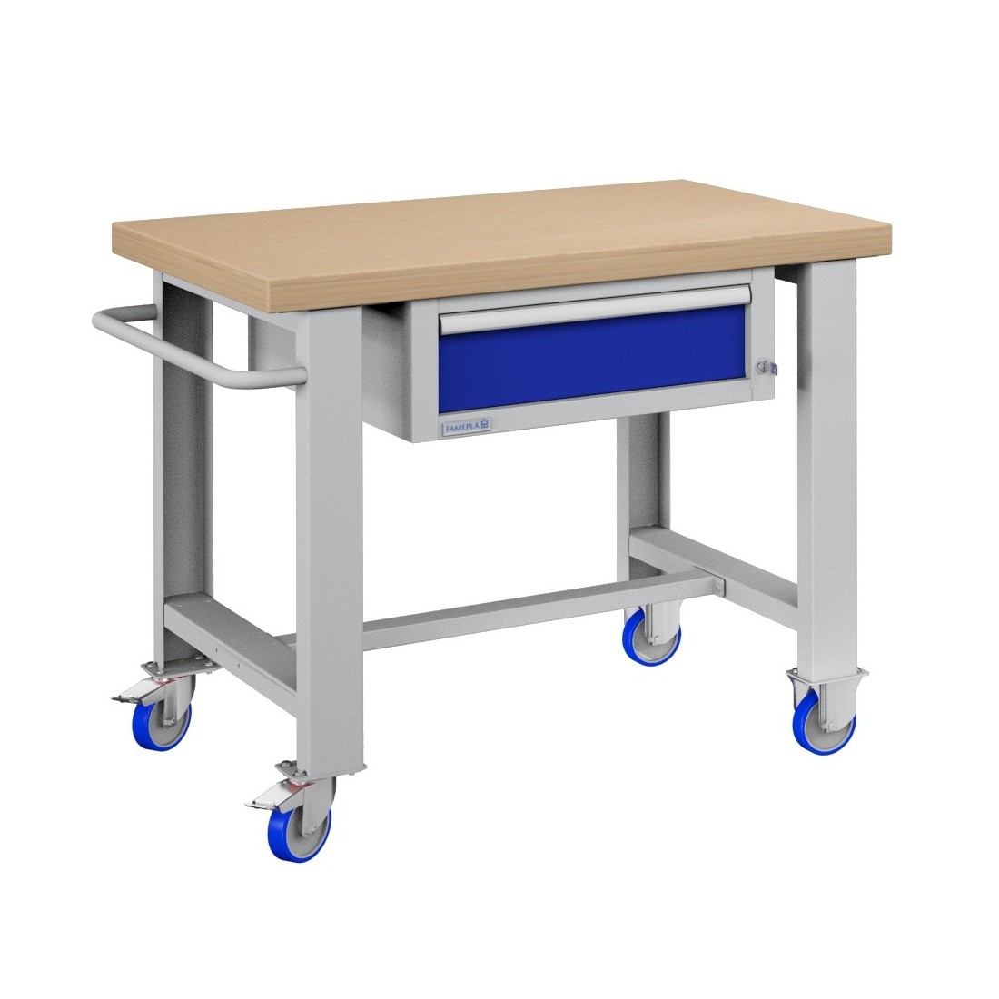 BANCO LAVORO PROFESSIONALE CON RUOTE MANIGLIONE E CASSETTO DA h 150 mm RIPIANO DA 40mm