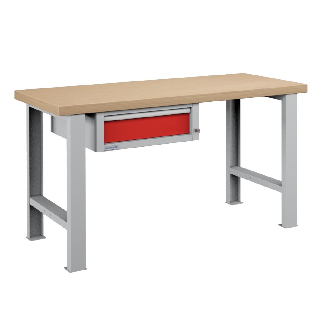 Banco da lavoro professionale con 1 cassetto 1500 x 750 mm – Portata 800 kg – Ripiano in legno o gomma | Store-Up