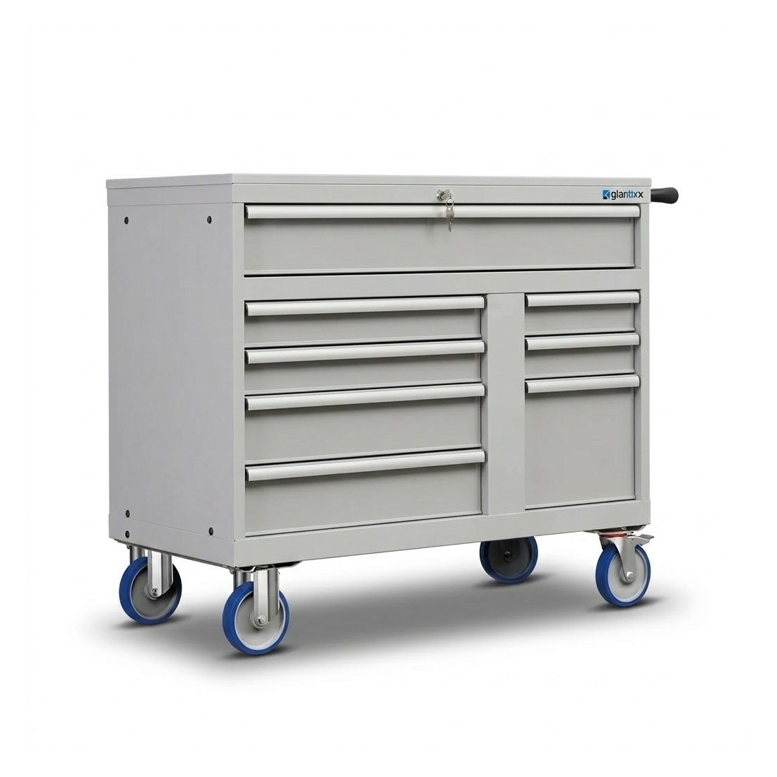 Il carrello è dotato di 8 cassetti con diverse profondità e capacità di carico, tutti con estrazione al 100% per un accesso completo al contenuto: