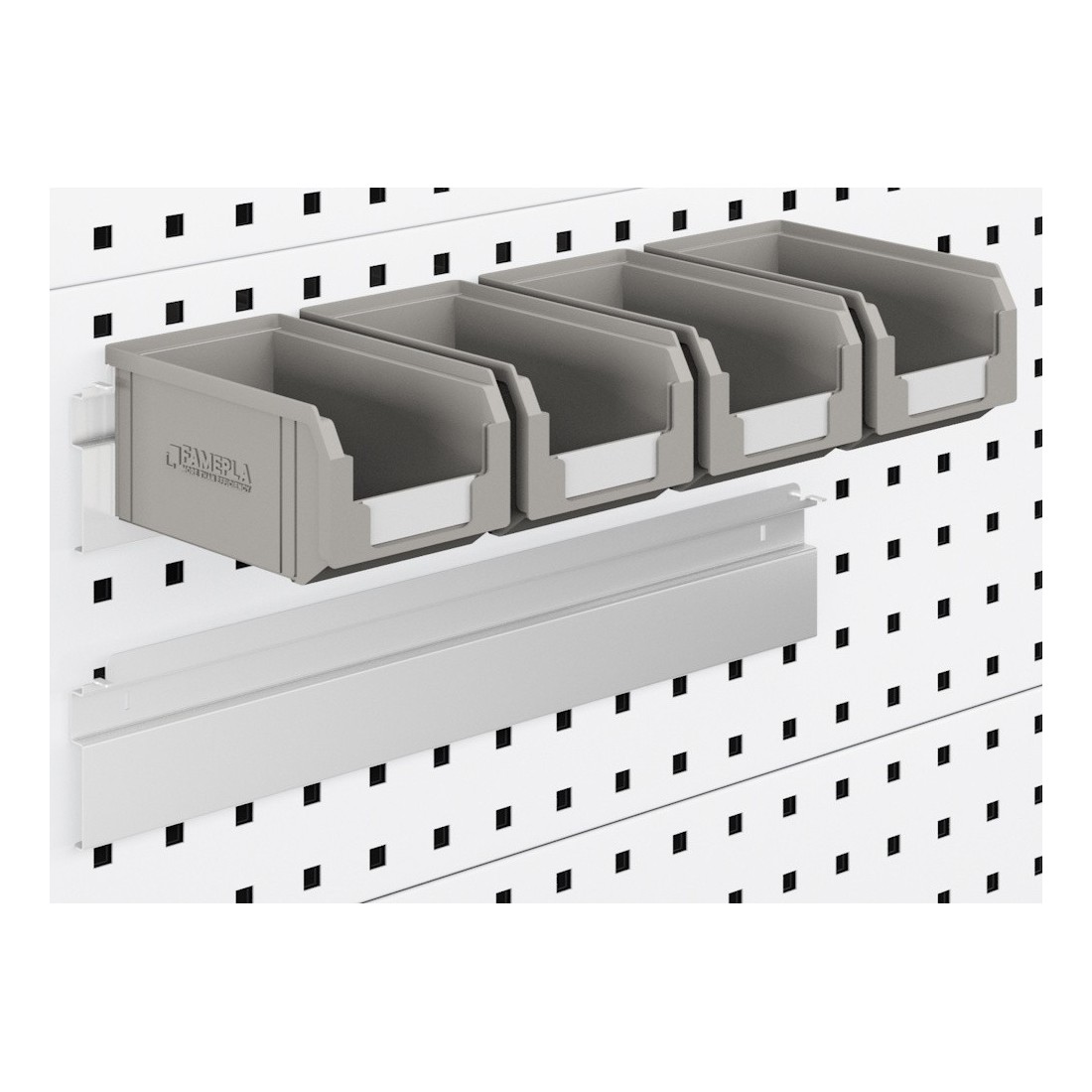 Set 4 Contenitori a Bocca di lupo Mis 1 con profilo per pannello forato