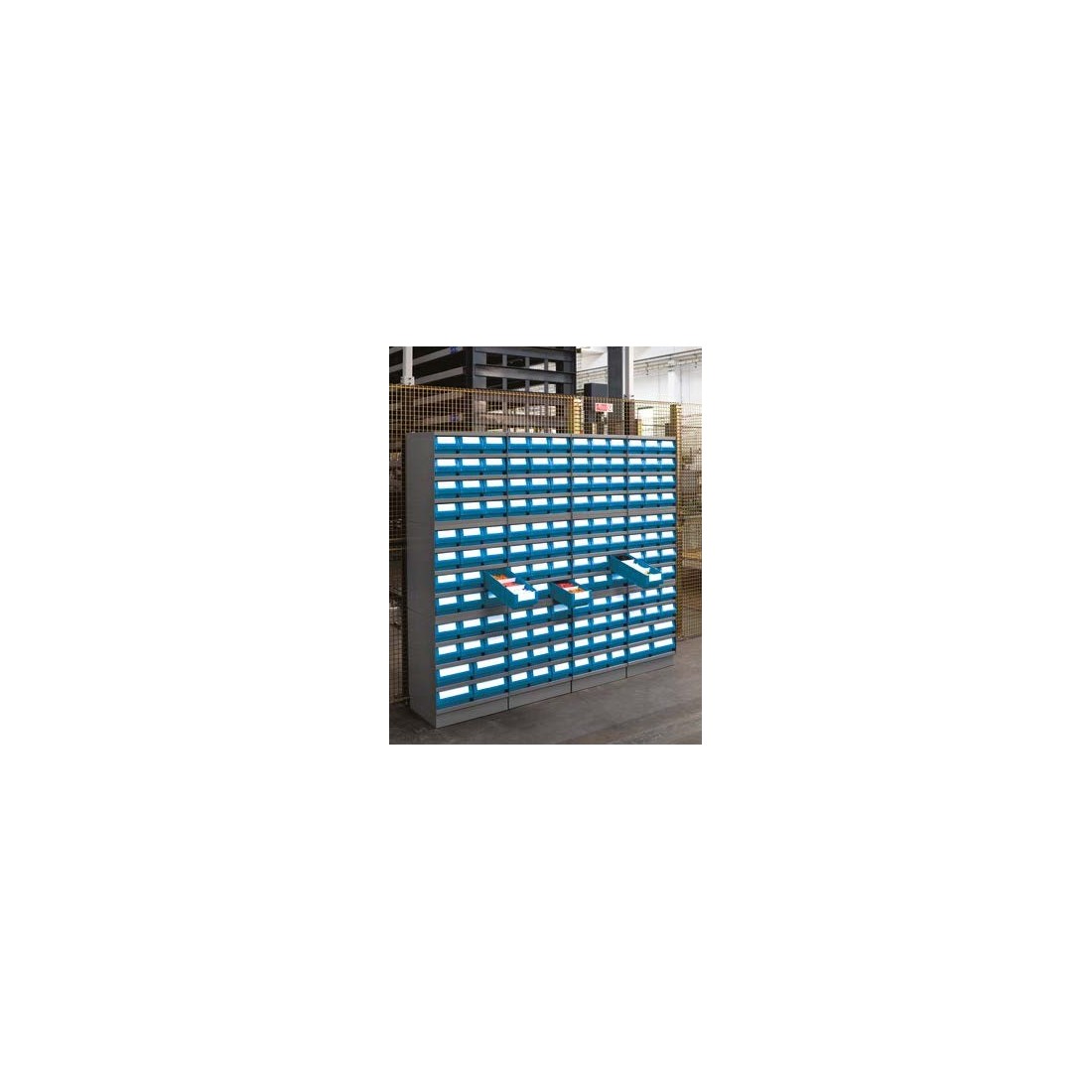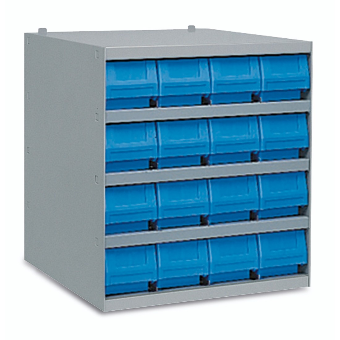 Completo di 16 cassette RK 400x120x100h mm blu, guide e fermi posteriori per cassette.