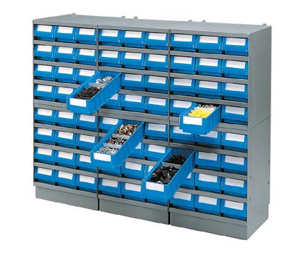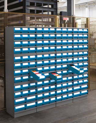 I contenitori RK sono stati ideati per essere inseriti all’interno degli scaffali RK-BOX, realizzati in lamiera di acciaio di colore grigio RAL 7000 e progettati per rispondere a numerose esigenze operative. Gli scaffali RK-BOX sono sovrapponibili con moduli della stessa profondità o di profondità decrescente.