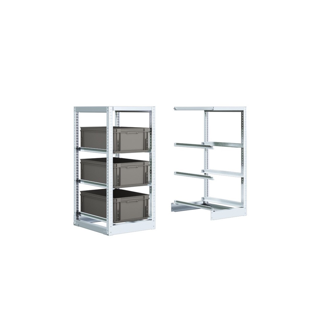 Scaffale base porta cassette zincato portata 600kg totale e 50kg a guida