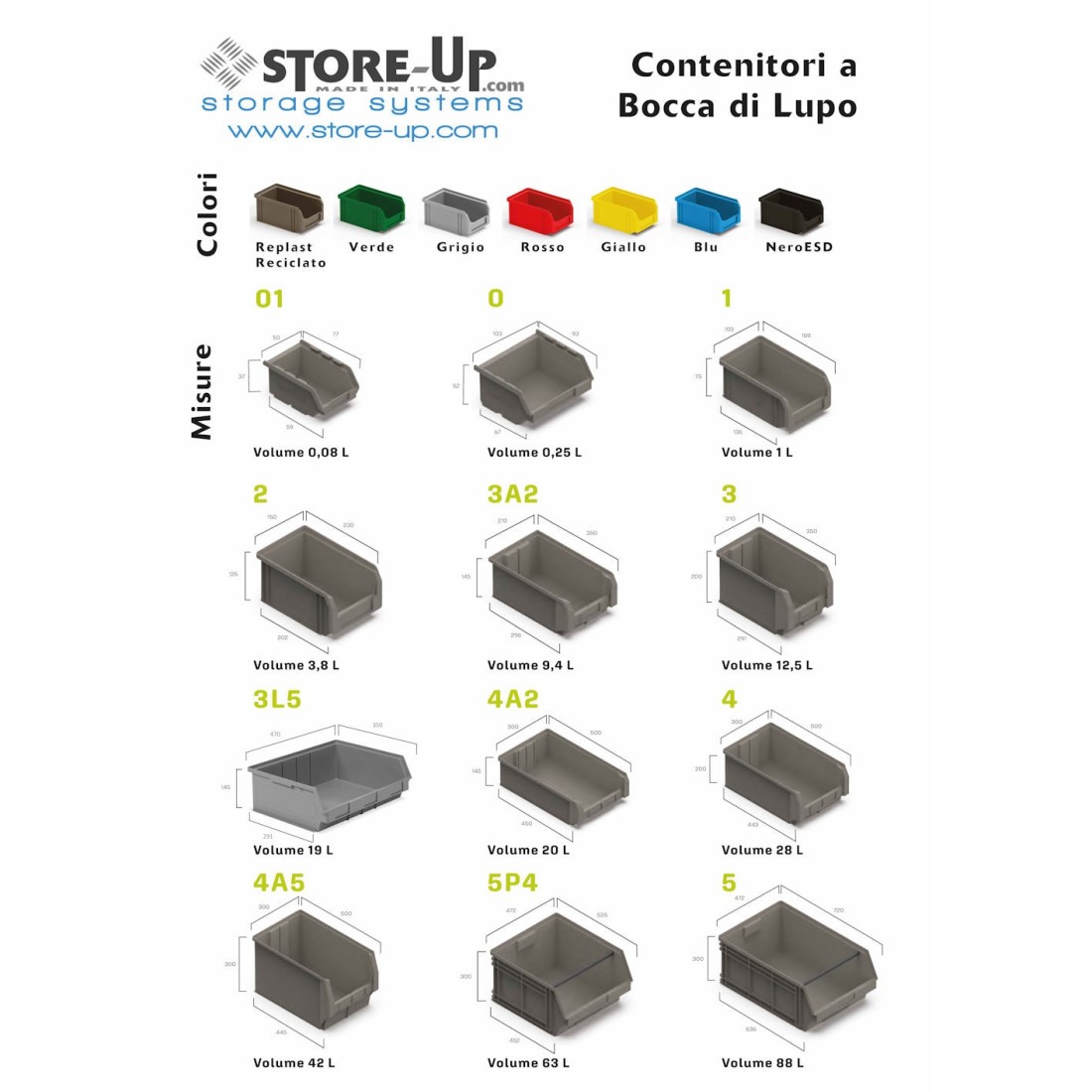 - 5 bocche di lupo mis. 3A2 210x350x145h mm Replast grigio scuro