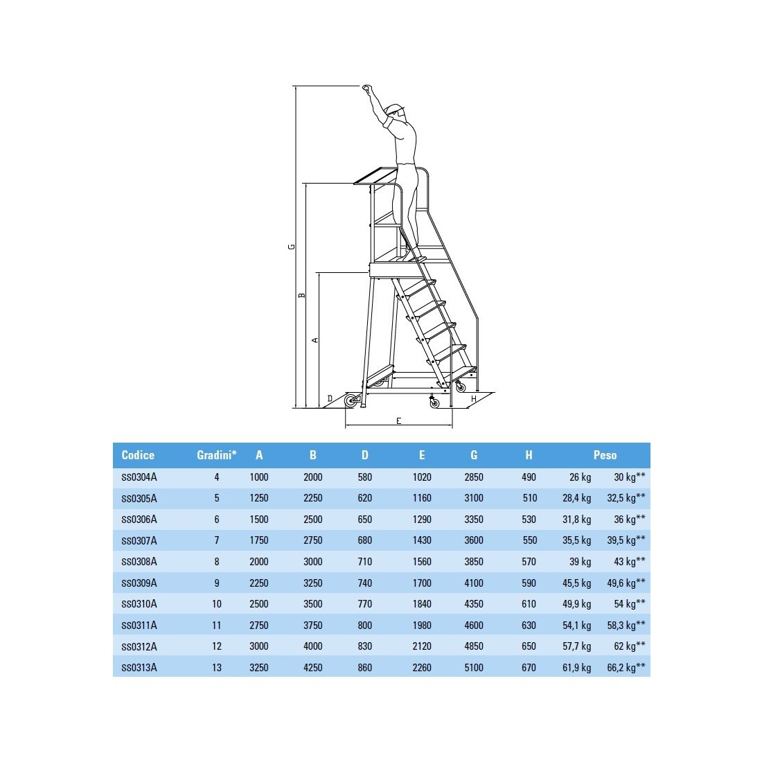 ** Peso della scala con dispositivo frenante