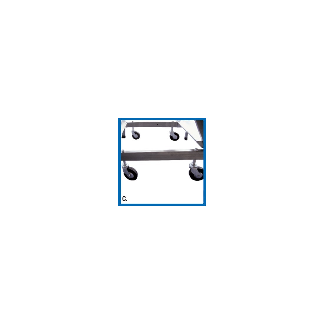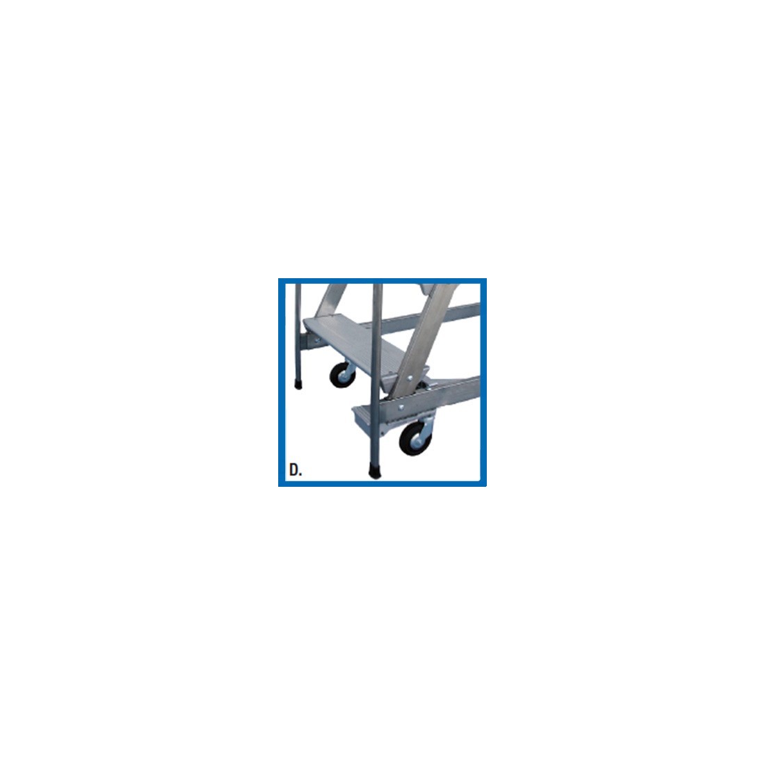 • CCBR/AA (foto D, da 4 a 8 gradini): 2 ruote piroettanti posteriori con molla e 2 ruote piroettanti anteriori con molla.