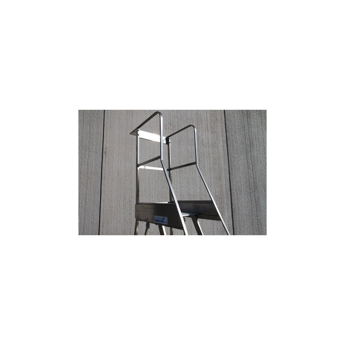 E’ costruita con telaio in acciaio inox, gradini e pianerottolo in alluminio antiscivolo ed è munita di corrimano.