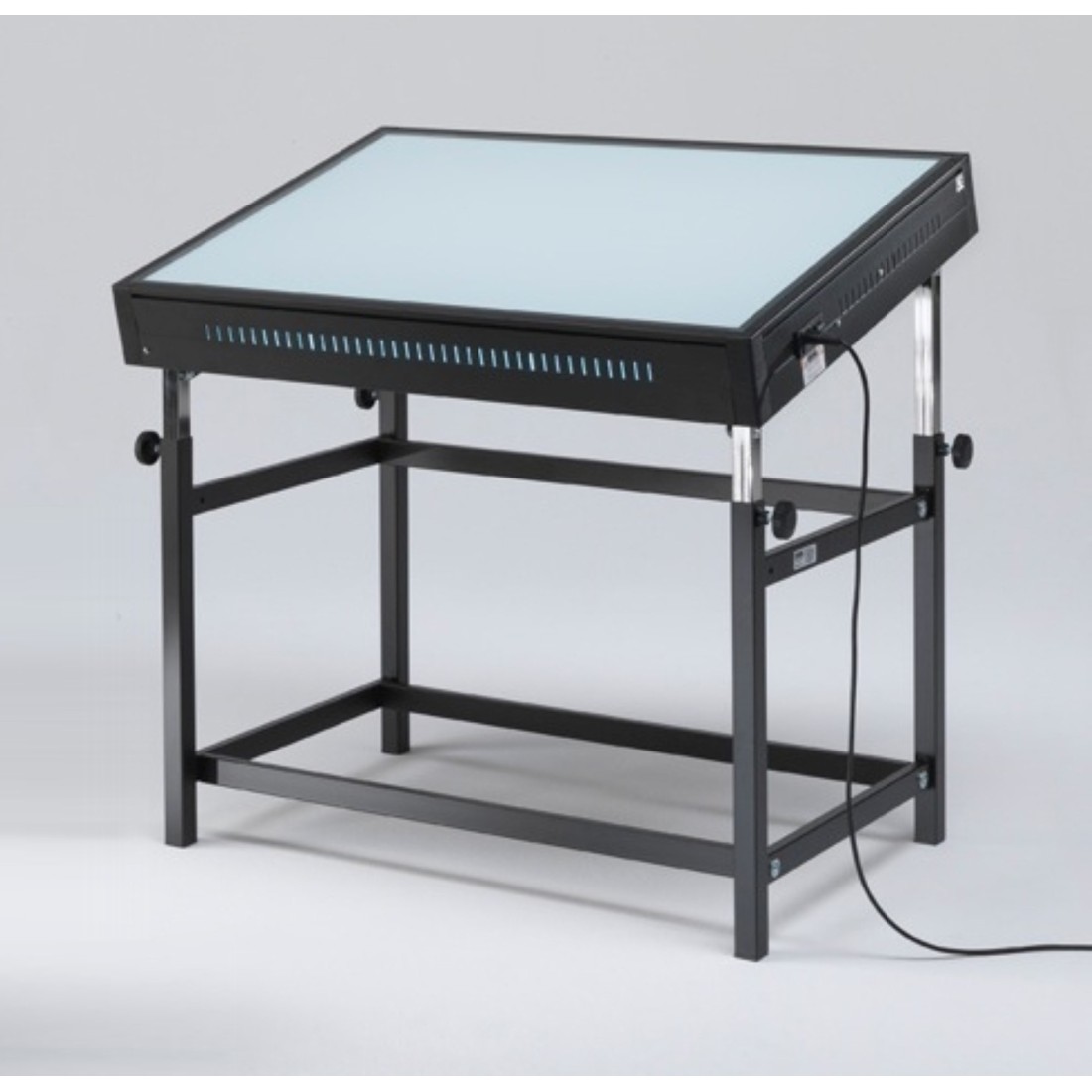 Grapholux Tavolo con piano luminoso da lavoro e controllo qualità, con struttura metallica.